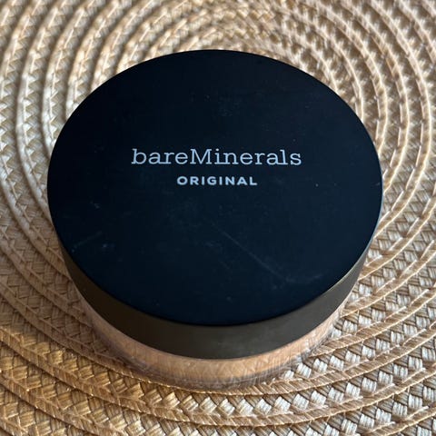 bareMinerals Original mineraalimeikkipohja sävyssä Light Beige 09. Avattu, kokeiltu pari kertaa ja todettu sävy epäsopivaksi itselle. Eli kyseessä lähes täysi rasia, josta tosin vähän vaikea saada kuvaa, kun sirotinkantta ei saa auki.