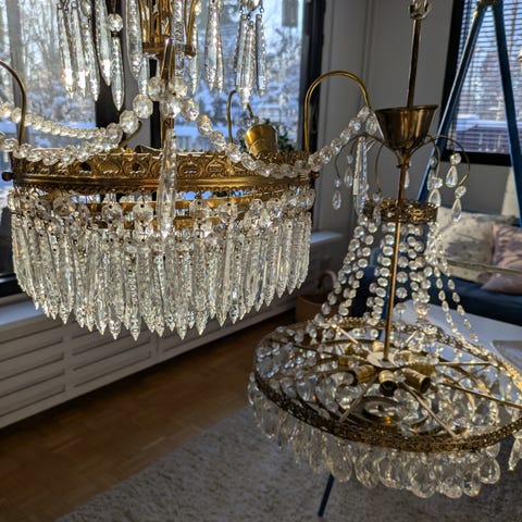 Myydään varakristalleja kristallikruunun. Kristallit ovat valmiiksi kahden ketjuissa, kuten kuvasta näkyy.