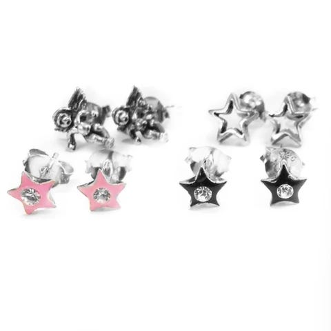 Tähän settiin kuuluvat neljät 925-hopeiset nappikiinnitteiset korvakorut huokeaan alennushintaan! Setissä on upeasti kimaltavia pyöreitä korvakoruja. Pinkkiä mallia koristavat lukuisat lasizirkonit, vaaleaa ja turkoosia eri sävyissä välkehtivä helmiäinen ja pienimmissä on vaaleat pienet helmet. Tällä setillä saat annettua usealle erilaisella asulle viimeisen silauksen.