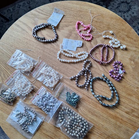 35 kpl erivärisiä helmiä. Lila/kulta/oranssi. Panduro Hobby.