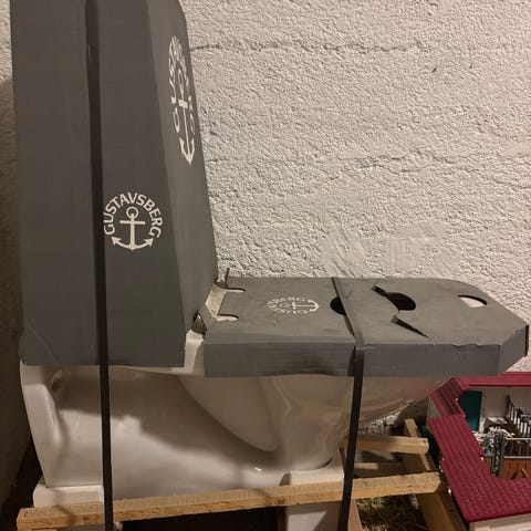 Piilojalallista istuinta ei saanutkaan asennettua vanhan tilalle kh-remontin yhteydessä. Tämä kävi ilmi vasta laatoitustöiden jälkeen, joten tilalle hankittiin "perinteisellä" jalalla oleva istuin.