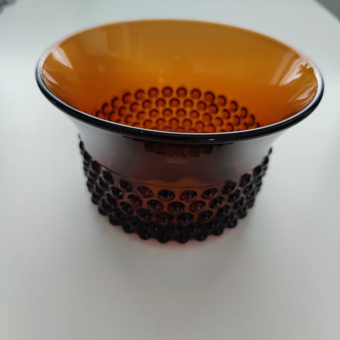 Ehjä ja hyväkuntoinen Nuutajärvi Kanerva lasimaljakko 22,5cm