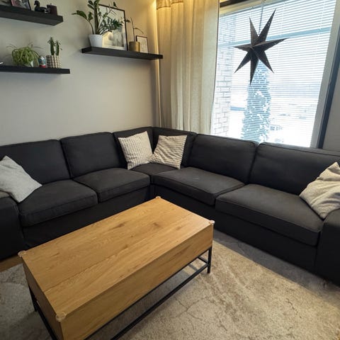 Sohva purkautuu kolmeen osaan, joten helpohko kuskata.