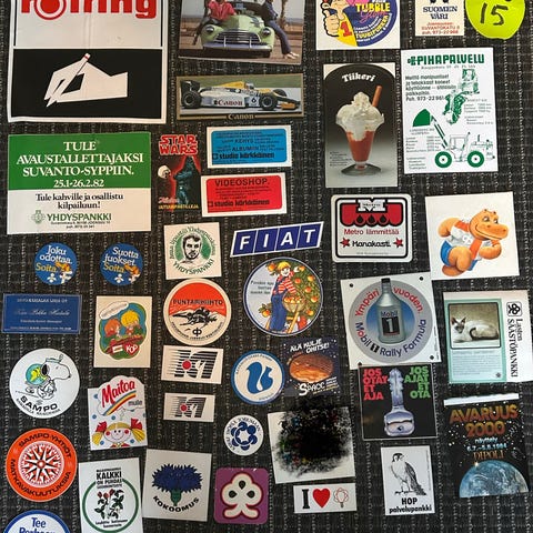 Kuvan kasa erilaisia juomien sekoitustikkuja 80 luvulta.