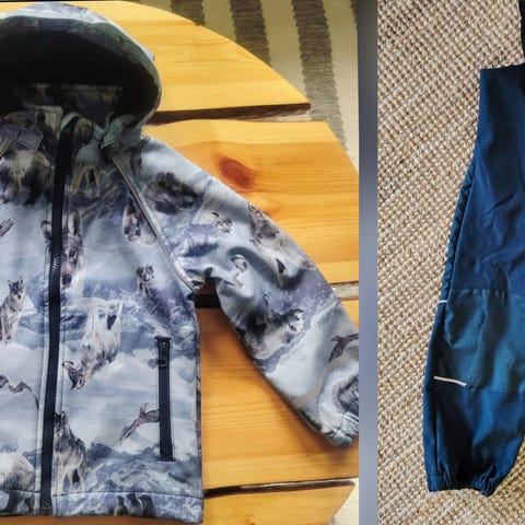 Muutaman kerran rinteessä ollut takki ja housut. Ei tahroja tai kulumaa. Housuissa vyötäröllä tarrakiristys tarvittaessa.