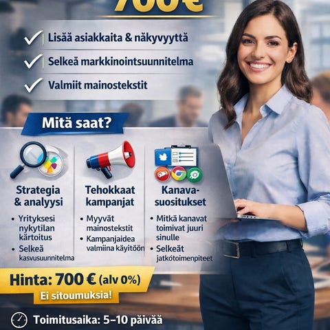 Tarjoan yrityksille TikTok- ja Instagram-markkinointia, jonka tavoitteena on oikeasti myydä, ei vain kerätä tykkäyksiä.