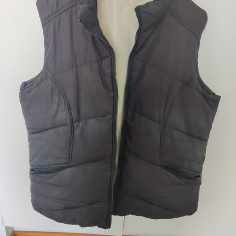 Kassillinen pääsääntöisesti mustia naisten vaatteita koossa 42-46 ja kuvan toppaliivi sekä -takki, molemmat kokoa 44.