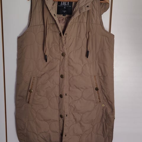 Siisti, hyväkuntoinen vuorillinen tikkiliivi. Merkki Voglia. Liivin edessä 5 nappia. Liivin edessä 2 reilunkokoista taskua, taskun läpässä 2 nappia (kuva). Liivin pituus 72 cm ja kai-kai 57 cm. Liivin vyötärön kohdalla kiristysnauha liivin sisällä (kuva). Vesipesu 40 asteessa. Liivissä on tallella yks ylimääräinen nappi. Liivin voi pitää villapaidan päälläkin. Hinta 7 €.