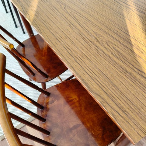 Myydään vanhat pinnatuolit. Tuolit massiivipuuta, istuinosan materiaalina teak.