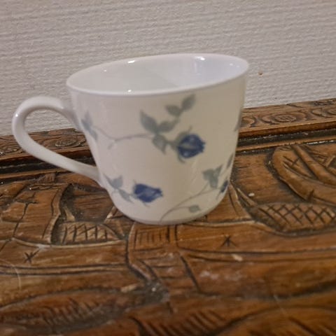 Posliinimuki, jossa sinivalkoinen koristekuviointi. Muki sopii esimerkiksi kahvin, teen tai muiden kuumien juomien tarjoiluun. Kuviollinen pinta jatkuu mukin ympäri, ja siinä on korvalla varustettu perinteinen muoto. Soveltuu arki- ja kattauskäyttöön.