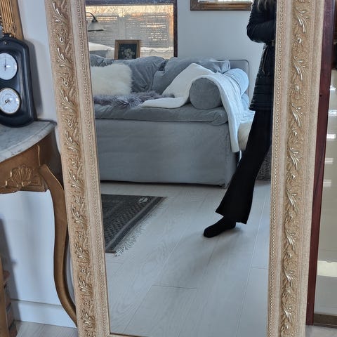 Upea peili. Kultainen väri. Todella kaunis muotoilu. Papukaija-peili. Mitat ovat seuraavat (+/-):Korkeus: 59 cmLeveys: 26 cmKaikki tuotteemme pakataan hyvin ja lähetetään vakuutettuna.