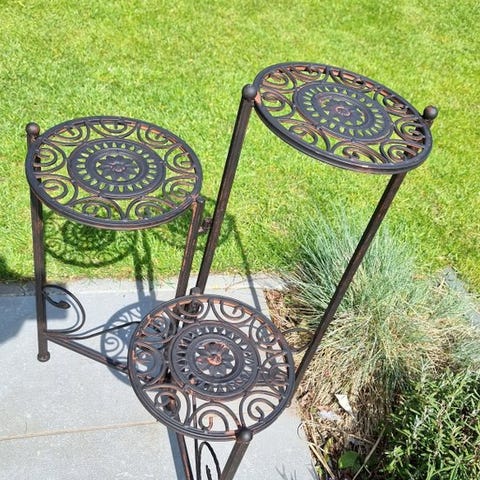Tämä on hauska säädettävä kukkalaatikko, jossa on 3 tasoa. Mitat ovat seuraavat (+/-):Korkeus: 67 cmLeveys; 47 cmKaikki tuotteemme pakataan hyvin ja lähetetään vakuutettuna.