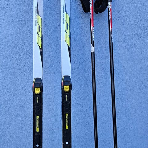 Fischer RCR classic perinteisen tyylin mustapohjainen suksi. SNS siteet. Pituus 192 cm. Sopii 65-77 kg painoiselle ja 165-175 cm pitkälle henkilölle. Lisäksi exelin integra sauvat 130 cm pituus.