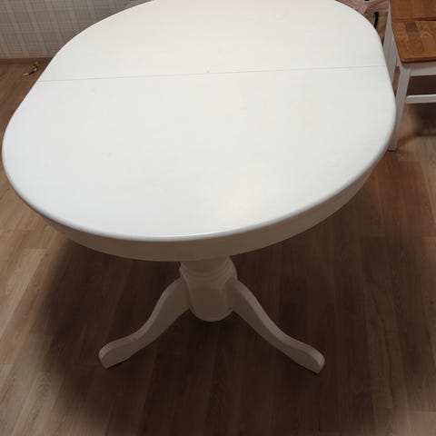 Myydään hyväkuntoinen ruokapöytä ja neljä tuolia. Pöydän leveys 160 cm, jatkopalan kanssa 200 cm, syvyys 90 cm, korkeus 75 cm.