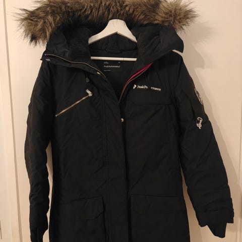 Musta hyväkuntoinen Peak Performance puolipitkä talvitakki.