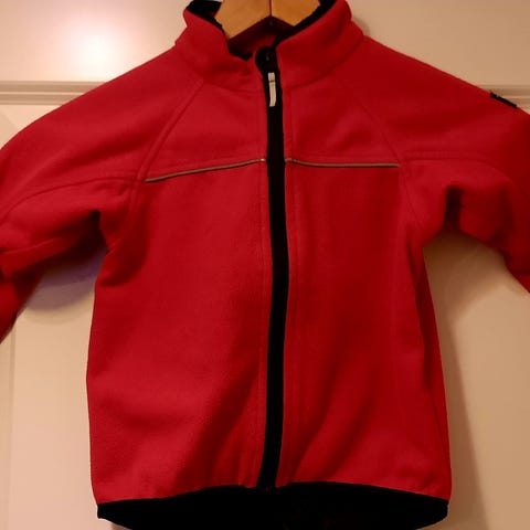 Yleisilmeeltään siisti ja ehjä, tuulenpitävä fleecetakki. Muutama haalea tahra, saattaa lähteä pesussa. Heijastimissa kulumaa.