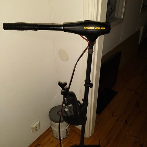 Minn Kota sähköperämoottori veneeseen. Musta perämoottori, jossa on käsiohjaus ja kiinnike veneen perään. Moottori saa virtansa 12 V akusta, joka kytketään mukana olevilla kaapelipäätteillä. Soveltuu esimerkiksi soutuveneeseen tai pieneen avoveneeseen hiljaiseen liikkumiseen ja tarkkaan ohjailuun sisävesillä tai rannikkoalueilla.
