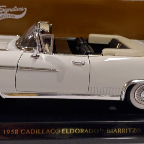 Brooklin Models – Cadillac Eldorado 1957 – 1/43 – Valmistettu EnglannissaUpea miniatyyri Brooklin Modelsiltä, joka esittää Cadillac Eldorado 1957 koossa 1:43, valmistettu Britanniassa metallista.Kokoelman keräilymalli, joka on tunnettu erinomaisesta reproduktiostaan ja Brooklinille tyypillisten viimeistelyjensä ansiosta. Hopeinen maalaus on erinomaisessa kunnossa, sisätilat siistit, pyörät ja kromatut osat hyvin säilyneitä.Miniatyyri on yleisesti hyvässä kunnossa, ihanteellinen klassisten amerikkalaisten mallien keräilijälle.Myyty ilman alkuperäistä laatikkoaKuvissa näkyvä sisustus ei sisälly myyntiin.Malli on vitriinissä.