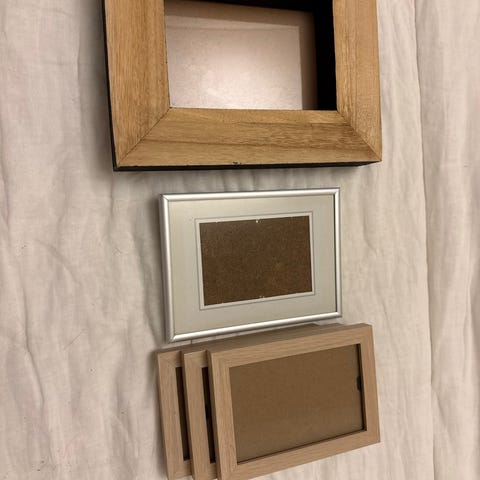 3 kpl tummanruskeaa, mustakehyksistä korkkitaulua. Ostettu IKEAsta. Seinään kiinnitettävät, erilliset kiinnitysosat niin saa taulut sekä pysty-, että vaakasuuntaan.
