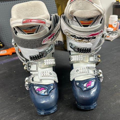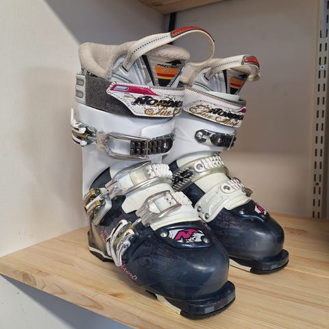 Salomon laskettelumonot. Väri vihreä/harmaa, useita solkikiristyksiä ja tarrakiinnitys varressa. Koko 24/24,5, 285mm. Sopivat lasketteluun.