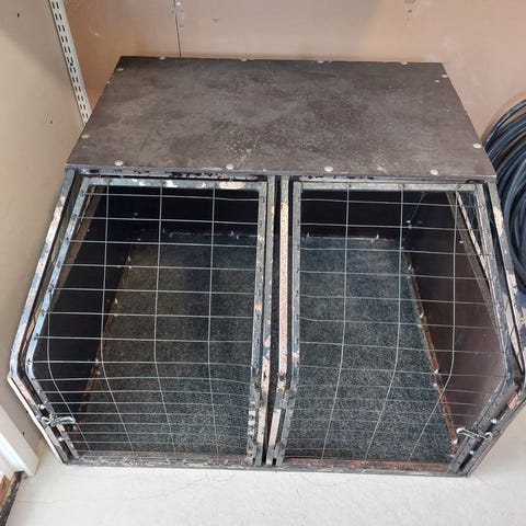 Metallinen koiraboxi autoon. J.Vartiaisen laatutuote. Hyvässä ja siistissä kunnossa. Sopii XC60:n (vm.2016) takatilaan nakutettuna.