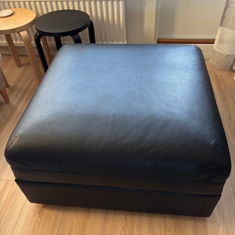 Valkoinen nahkarahi. 80x80. Korkeus noin 42cm. Maskun