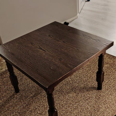 Aikansa palvellut 50 -luvun pöytä käsistään kätevälle tuunattavaksi. Puuosat ovat ehjät, mutta jalkojen liimaukset ovat irronneet.