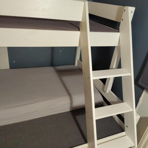 Sänkyjä voi käyttää myös erillään. Käytönjälkeä jonkin verran löytyy. Patjat kuuluu kauppaan, ne uusittu 6kk sitten, joten on kuin uudenveroiset.