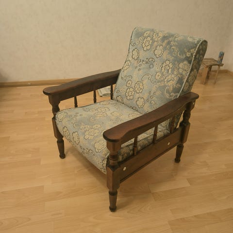 Jotain kulumaa on ja pohjan jousi katkennut. On kumminkin siistissä kunnossa ja kestää istumista hyvin.