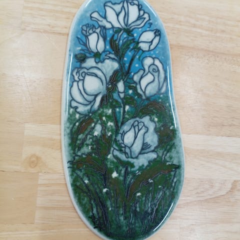 Heljä Liukko-Sundströmin Arabialle suunnittelemiqMyynnissä olevat laatat on ehjä ja muutenkin hyväkuntoinen. Myös seinäkiinnike sisältyy hintaan.