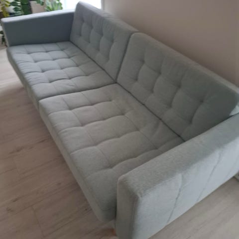 Kaks vuotta sitten ostettu veken Toronto U-sohva, hiekka, kromiset jalat