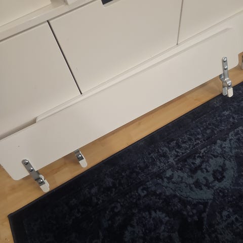 Kiinnikkeitä kääntämällä turvalaidan voi kiinnittää tavalliseen tai jatkettavaan sänkyyn, jonka reunat ovat enintään 44 mm paksut.