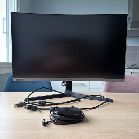 Näytön kanssa tulee virtajohto ja tarvittaessa DisplayPort kaapeli.
