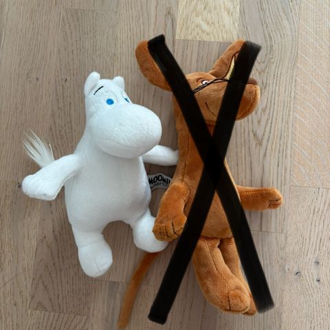 Muumi pehmolelu raidallisella liinalla