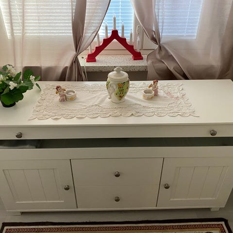 Värinä musta/tammi, hyvässä kunnossa oleva senkki