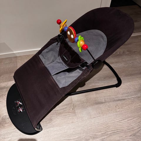 BabyBjörnin klassikkositteri vauvalle, tämä oli meillä vauvan suosikki. Ergonomisesti muotoiltua, pehmeää ja luonnollisella tavalla keinuvaa BabyBjörn Bouncer Balance Soft -sitteriä voi käyttää heti syntymästä lähtien aina kahteen ikävuoteen asti. Ensin se toimii sitterinä, ja kun vauvasi oppii istumaan ja kävelemään ilman tukea, voit kääntää kankaan ja tehdä sitteristä mukavan tuolin. BabyBjörn Bouncer Balance Soft -sitteriä voi käyttää kolmessa eri asennossa 9kg asti. Muuten ehjä, mutta yhdestä kohtaa rispaantunut, minkä huomasin vasta nyt, eli ei haittaa käytössä. Tahroja en huomaa. Tuoksuton pesu ja muutenkin tuoksuttomasta kodista. Ovh. sitterillä 153€ ja lelukaarella 43€. Nouto Hki/Arabianranta.
