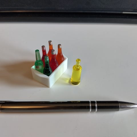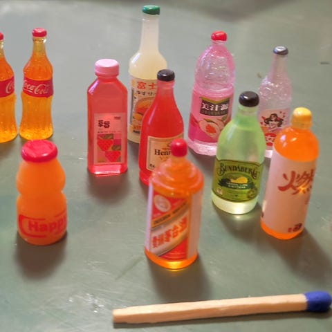Juomapulloja ja pikareita nukkekotiin