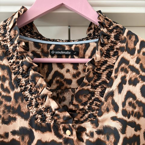 Gerard Darelin ruskea leopardi mekko kokomerkintä 40. Kai-kai noin 51 cm, vyötärö 44 cm, olka-helma 100 cm. Takahelmassa halkio. Hihansuissa pienet halkiot. Edessä rusetti. Takana pitkä piilovetoketju. Ohut vuori. Upea mekko leopardi-kuosista pitävälle🐆 Kunnoltaan erinomainen, eipä mitään käytön jälkeä. Postitus onnistuu.