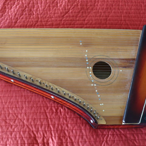 Iäkäs kantele, jota soitettu viimeksi 70-luvulla. Vaatii kunnostusta, ainakin kielet vaihdettava. Alaosan pituus 89 cm.