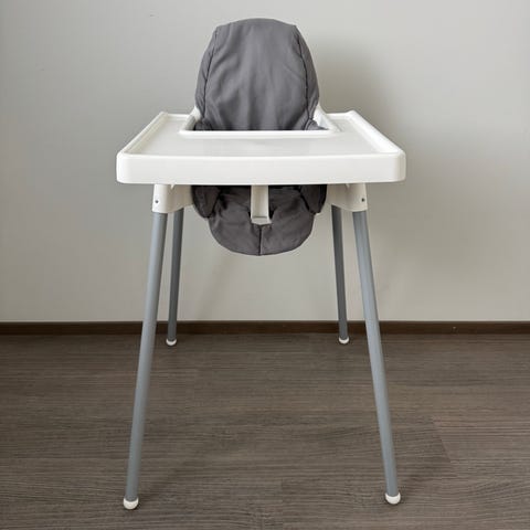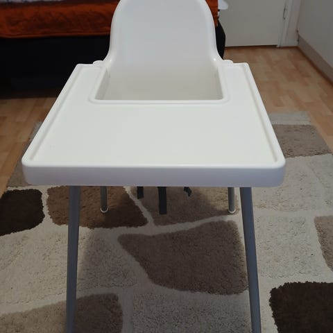 Ikea antilop syöttötuoli. Mukana jalkatuki, pehmuste ja päällinen siihen, tarjotin, vyöt.