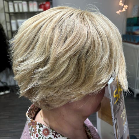 Malli kevyesti latvoista kerrostettu ja lainehtiva bob. Materiaali keinokuitu.