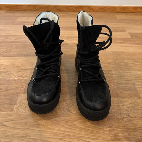 Todella hyväkuntoiset kengät, vain pari kertaa käytetty. Karvasisällys, joten lämpimät, käyvät niin talveen, kevääseen kuin syksyyn. Siistit nauhayksityiskohdat.