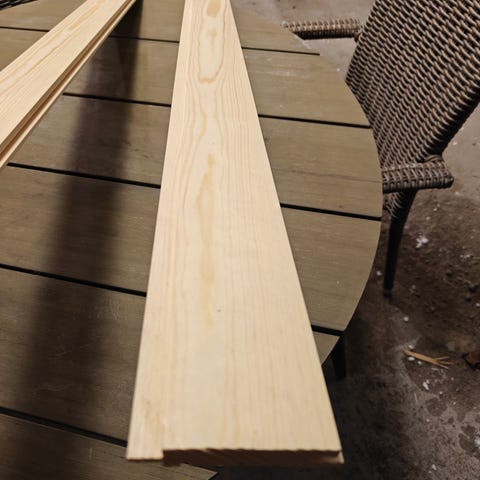 15x80 valkolakattua kuusipaneelia. 2.4m 19kpl. 3.3m 56kpl.