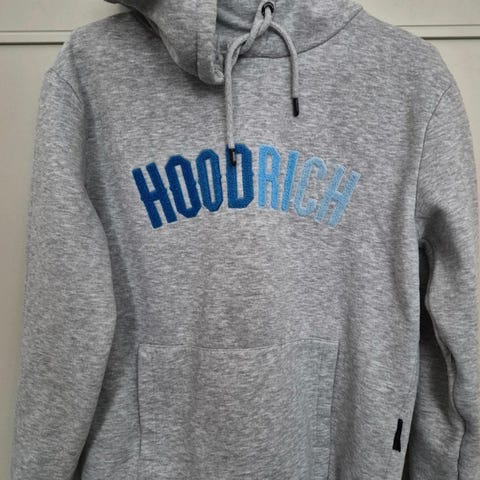 Hyväkuntoinen, kertaalleen on pesty. (Jäänyt muutoin käyttämättä, koko olikin liian pieni pojalle.) Sopii ehkä noin 164cm nuorelle. Edessä Hoodrich -painatus. Tasku.