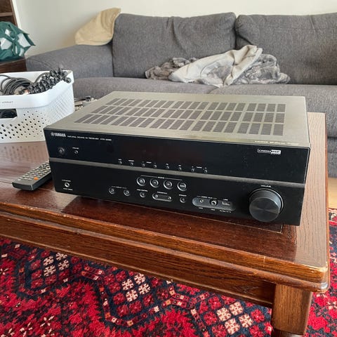 Yamaha vahvistin HTR-6230, 5-tie kaiutinsarja, Philips, Sony CD soitin (ei varmuutta toiminnasta). Yamaha basso/suppari, jalustalla kaiutin. 4kpl pylväsjalustoja, et/takakaiuttimiin, johtosarja. Aika iso paketti, joten lähettäminen haastavaa!
