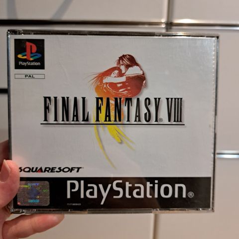 Squaresoft Final Fantasy VIII PlayStation peli. Roolipeli alkuperäisessä kotelossa, sisältää useita pelilevyjä. Yhteensopiva alkuperäisen PlayStation-konsolin kanssa. Kansigrafiikka ja levyt englanninkielisillä merkinnöillä. Ohjekirjaa ei ole