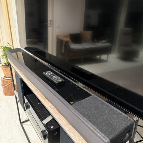 Myynnissä Sonyn jonkin vuoden vanha, mutta toimiva 3.1 Dolby Atmos soundbar subbareineen.