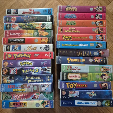 135Kpl Suomenkielisiä Lastenohjelmia VHS-Kasetilla