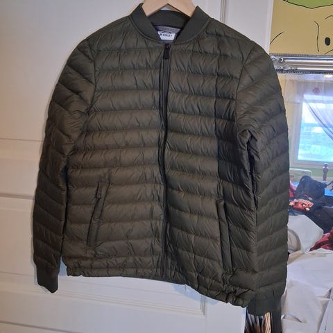 Käyttämättä jäänyt eli uudenveroinen Esprit kevytuntuvatakki kokoa 38. Kainalo-kainalo 52cm, olka-helma 64cm. Kankaan materiaali polyester, täyte untuvaa. Väri khaki, viininpunainen vuori, kullanväriset metalliosat. Vetoketjulliset taskut, hupun saa piilotettua kaulukseen.