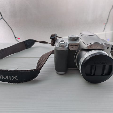 Hyväkuntoinen Panasonic Lumix DMC-FZ5-puolijärjestelmäkamera. Siisti linssipinta, ei suuria naarmuja rungossa ja toimii kaikin puolin hyvin